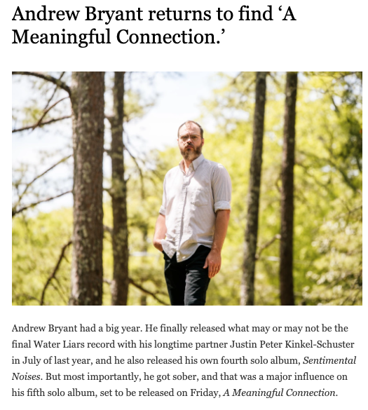 “Sentimental Noises, Andrew Bryant's new album started when he sat down alone in his makeshift studio where he lives in Mississippi and kept playing the same chords, but had no words. He says, "I opened the window in my studio and heard a bird singing on the power line outside. I remember saying out loud, "It'll be alright." - The Bitter Southerner